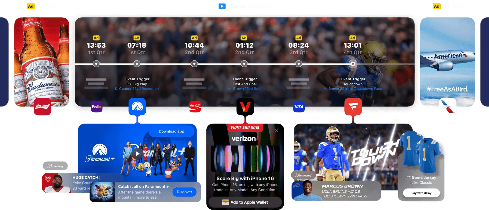 Dynamic brand messaging delivered during peak audience interest with maximum relevance.