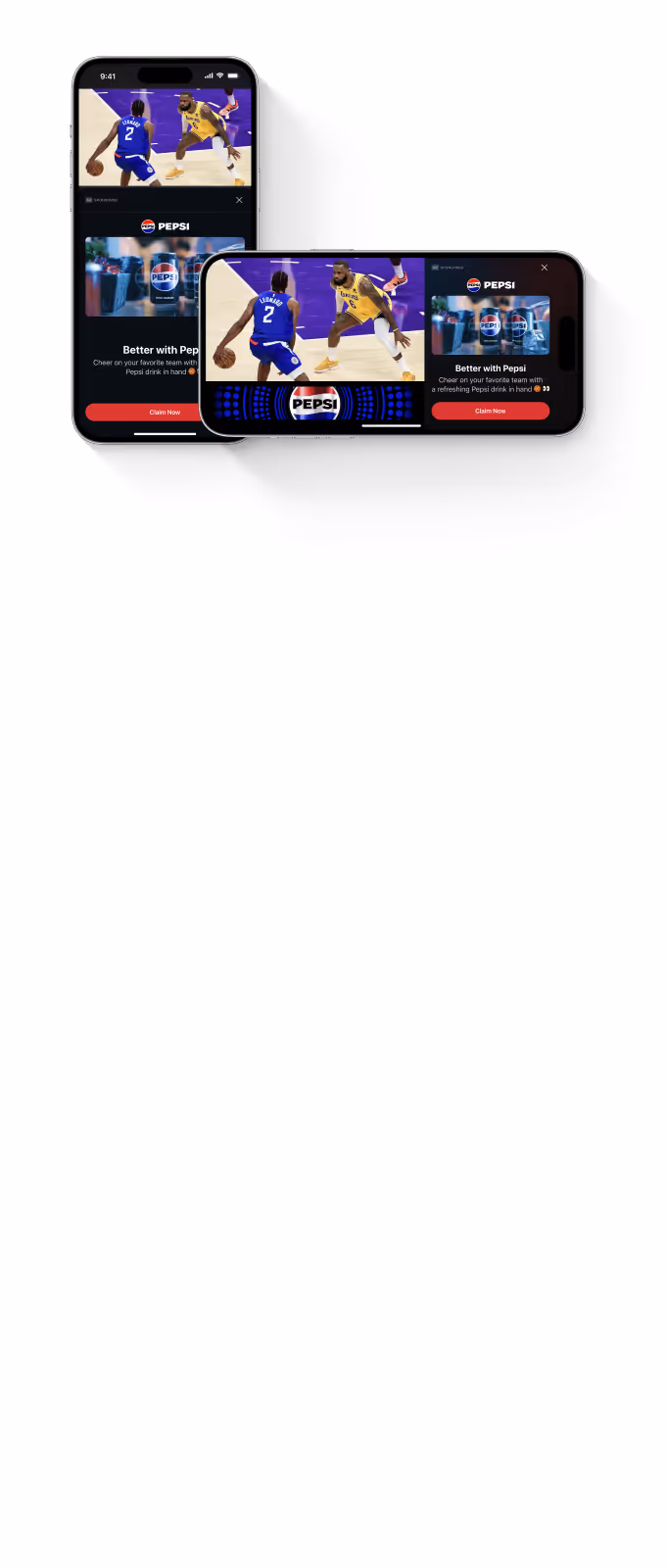 Broadcast-quality notifications with smooth animations and seamless transitions delivered at the right moment, with context. Every ad feels natural, adding context and relevance to in-game moments without disruption.
