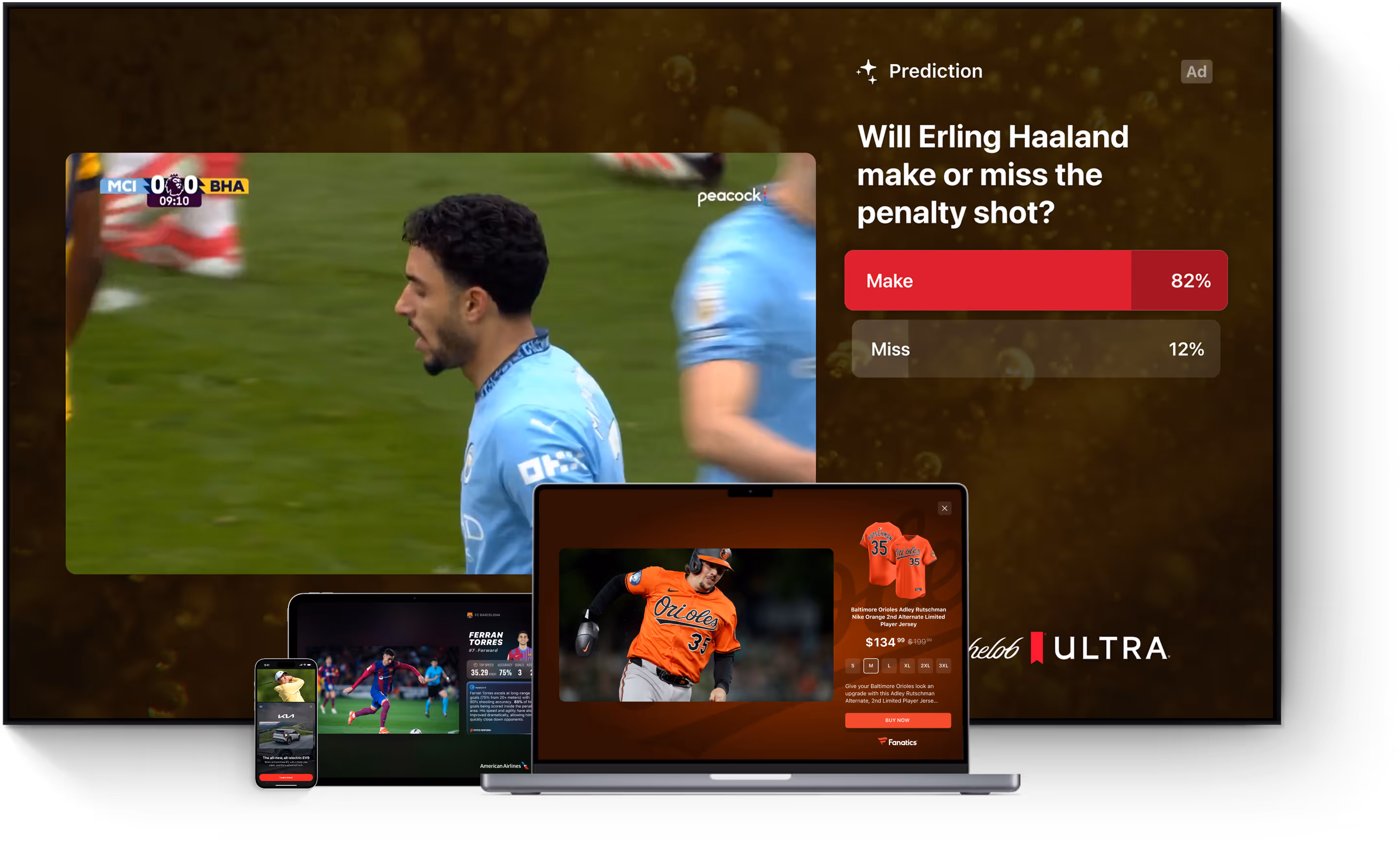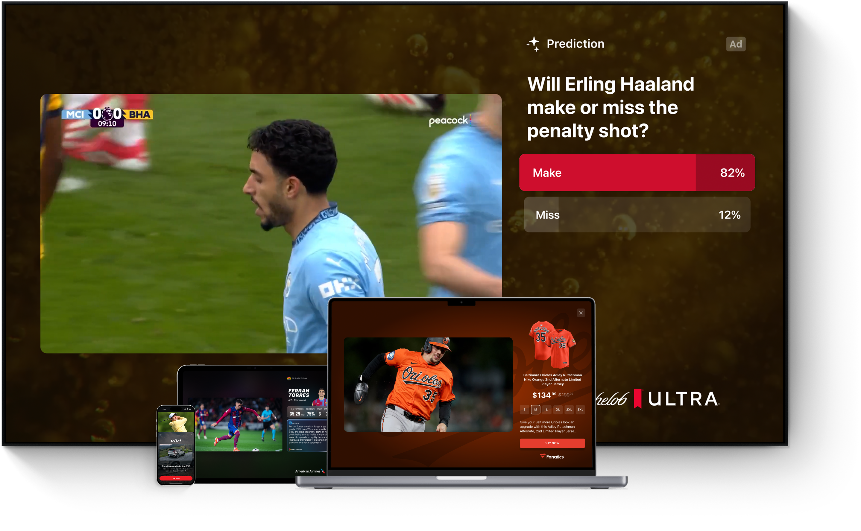 Built with native SDKs, StreamLayer Ads render beautifully on any screen — CTV, phone, tablet, or web — with broadcast-quality design, fluid animation, and engaging interactivity wherever you watch.